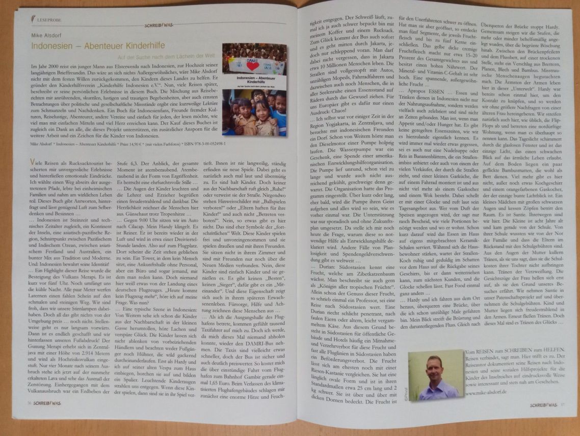 Eine Doppelseite über mein Indonesien-Buch in der österreichischen Sonderausgabe Weihnachten 2021 "Schreib Was".