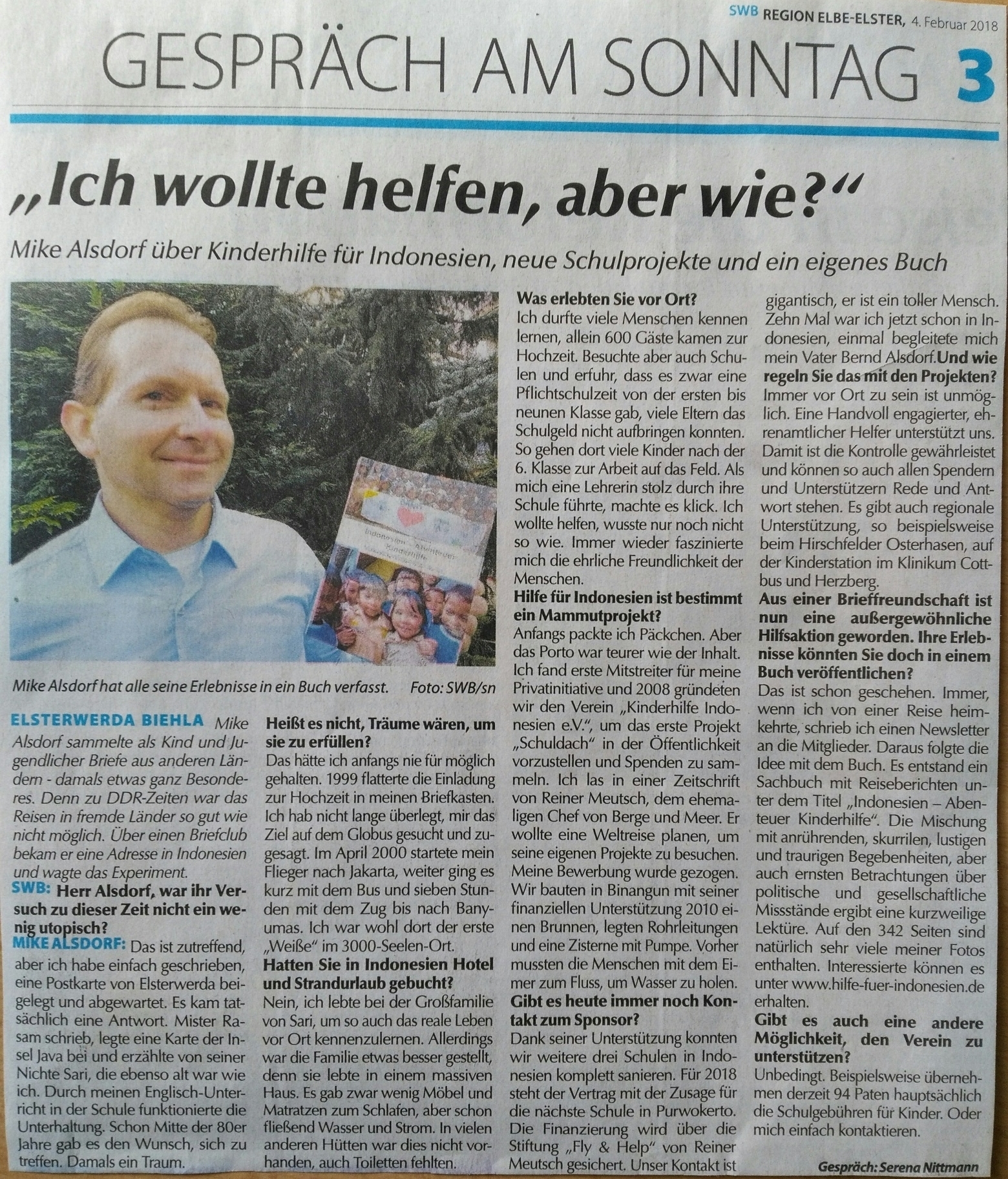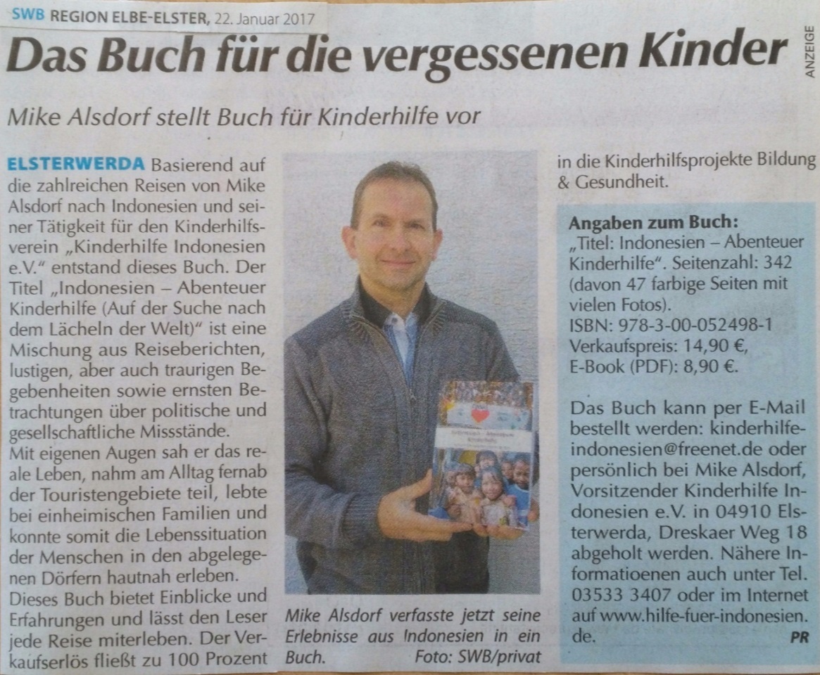 Im Jahr 2000 reist ein junger Mann aus Elsterwerda nach Indonesien, zur Hochzeit seiner langjährigen Brieffreundin. Das wäre an sich nichts Außergewöhnliches, wäre Mike Alsdorf nicht mit dem festen Willen zurückgekommen, den Kindern dieses Landes zu helfen.